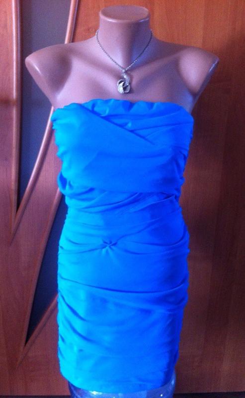 Нарядное голубое платье-бюстье со сборками. Красивый пошив и красивый цвет. Нежная модель, ткань-фатин. На фигуре смотрится очень стильно. Красивые сборки по всему платью, сзади-сделан красивый замок по спинке. Размер 8/36/S/наш 42. Длина-63см. ПОГ(полуобъем груди)-38см. Оплата на карту Приватбанка, отправка УкрПочтой или Новой Почтой после оплаты.