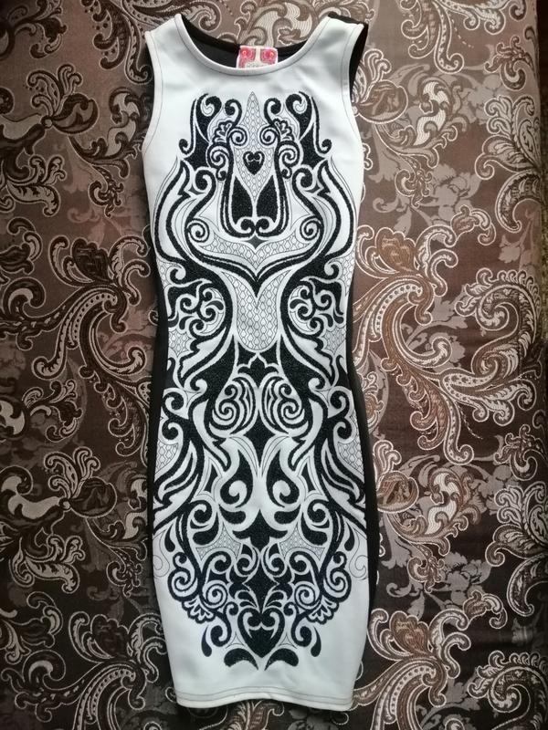 Платье сукня инь янь мини короткое по фигуре сарафан в принт бисером