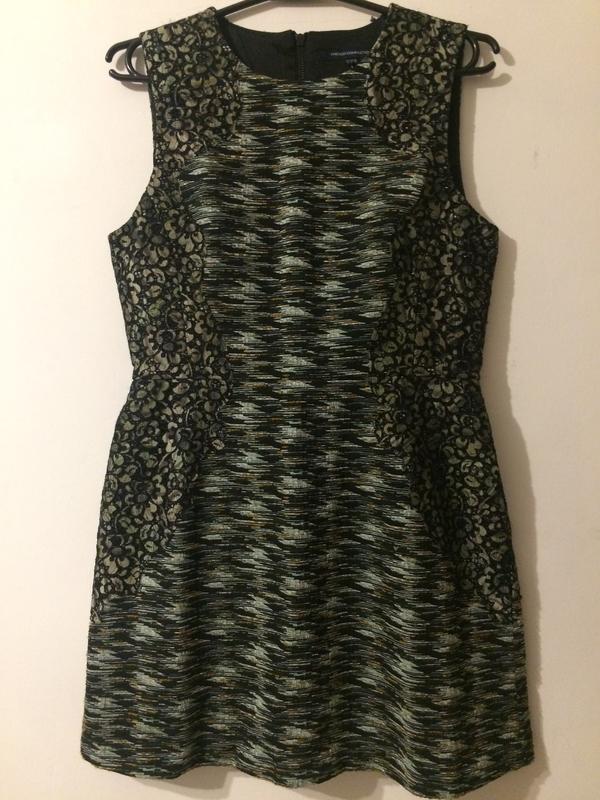 Новое, в очень хорошее состояние размер Л 14/42-44 плечи 38 см подмышки 49 см талия 40 см бёдра 54 см ширина низа 60 см длина от плеча 86 см пройма 25 см на подкладке, ткань плотная красивых зеленоватых оттенков
