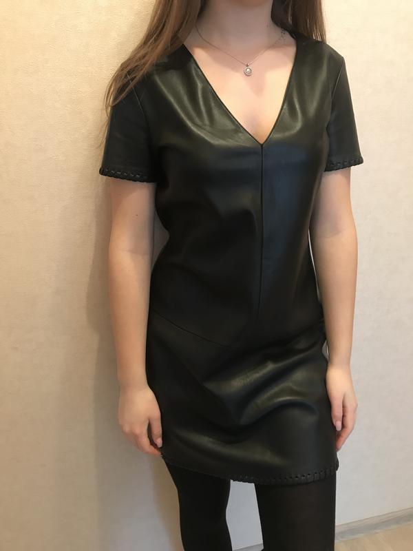 Кожаное платье ZARA Trafaluc Розмір М/28 Плечі - 38см Від підмишки до підмишки - 47см Талія -44см Бедра - 47см Глибина V-образного вирізу - 20см Довжина - 83см Довжина рукава - 18см