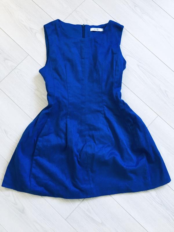 Синее платье из плотного замша на дайвинге с косточками для поддержания формы клёша. Размер: S-M Замеры: длина 78 см; Состояние: идеальное Цена: 260грн