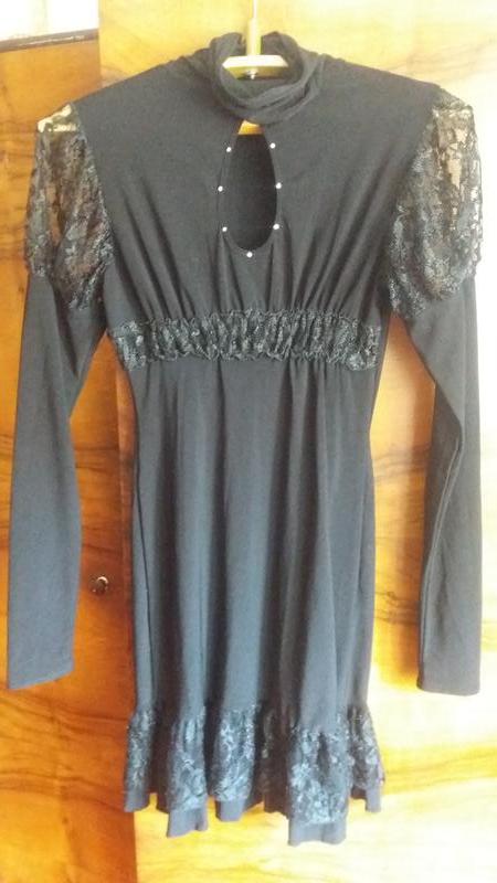Елегантне,облягаючу сукню зі вставками гіпюру.Чорного кольору.