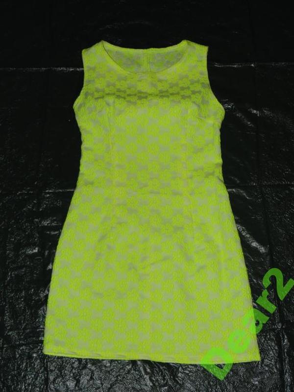 (Размер 46) - но ориентируйтесь по мерочкам: В отличном состоянии ! Очень красиво подчеркивает фигурку ! Цвет - ярко-салатовый (цветочки на белом фоне). Молния сзади по центру. Ткань - немного тянется. Длина платья – 82 см. ПОГ - 44-46см. ПОТ - 38см. ПОБ 49-51см. Дефектов нет !