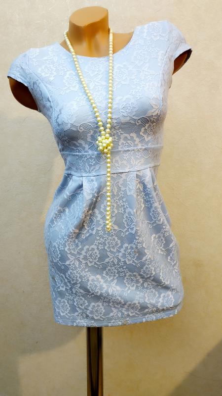 Шикарное нарядное платье с гипюром. В идеальном состоянии, как новое. Очень красивый нежно-голубой цвет. Сбоку потайная молния. Длина платья 78 см, ширина в груди 37 см, ширина в талии 31 см, ширина в бедрах 47 см.
