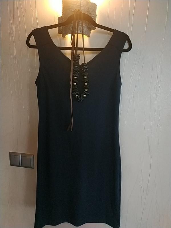 темно-синее платье.Украшение не продается.Состав полиэстер,на ощупь мягкий трикотаж.Новое.ПОГ42, хорошо тянется.ПОБ45 Длина88