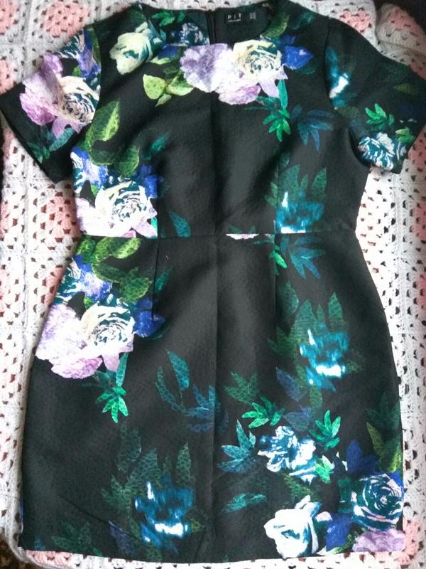 платье в цветочный принт на спине потайная молния. без подкладки. замеры плечи 41 см пог 51 см пот 43 см поб 58 см длина 88 см.