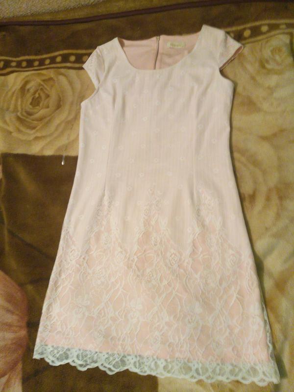 Раз одягнуте,схудла. Симпатичне платтячко,легеньке,стан нового. Верх гіпюр,підкладка-трикотаж. Ніжно рожевого кольору,фото не передає колір.Ззаду на замочку. По проханні надам додаткові фото. Ог-45 Від-41 Про-48 Довжина-86