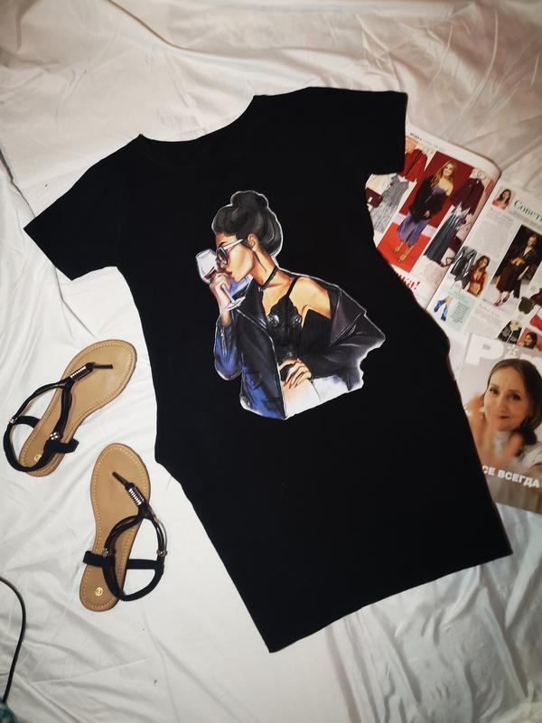 Крутое платье со стильным принтом Натуральный хлопок Сзади внизу есть микроскопическая почти не заметная дырочка(посл. фото)