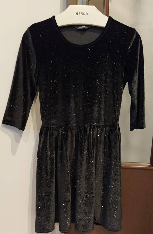 Стильне ,молодіжне, сучасне бархатне плаття з срібним напилення неймовірно гарне та чудово підкреслює фігуру) На бірочці вказано на 12-13років, але чудово підійде на S,XS#Стан нової речі 👌#