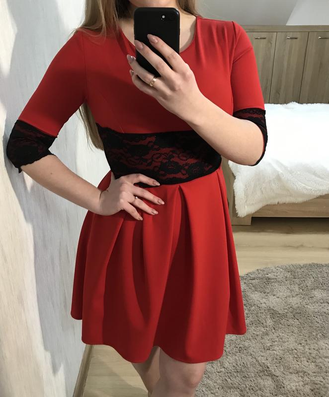 Красивезна сукня з мереживом в ідеальному стані! Без жодного дефекту. Одягалась один раз! Рукав довжиною 3/4, має мереживо, дуже красиве! Розмір м Довжина 85 см Ширина між пашками 40 см Талія 35 см Дуже класна тканина, тянеться трішки, приємна до тіла.