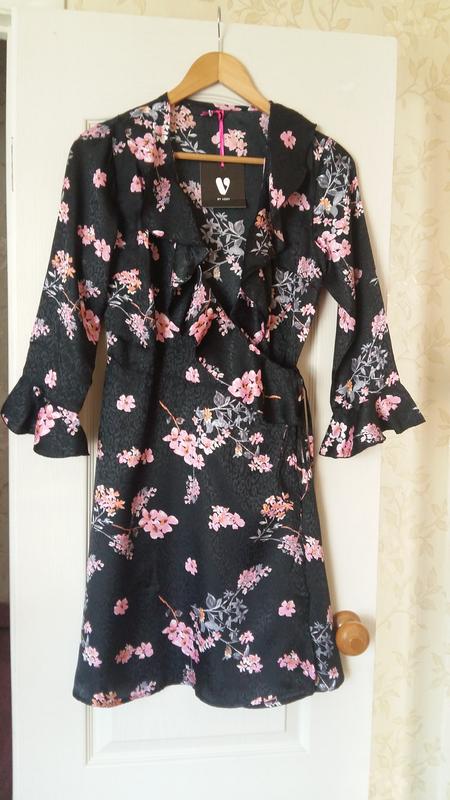 Акция 1+1= 3 🎁красивое черное платье на запах в цветочный принт 8р.