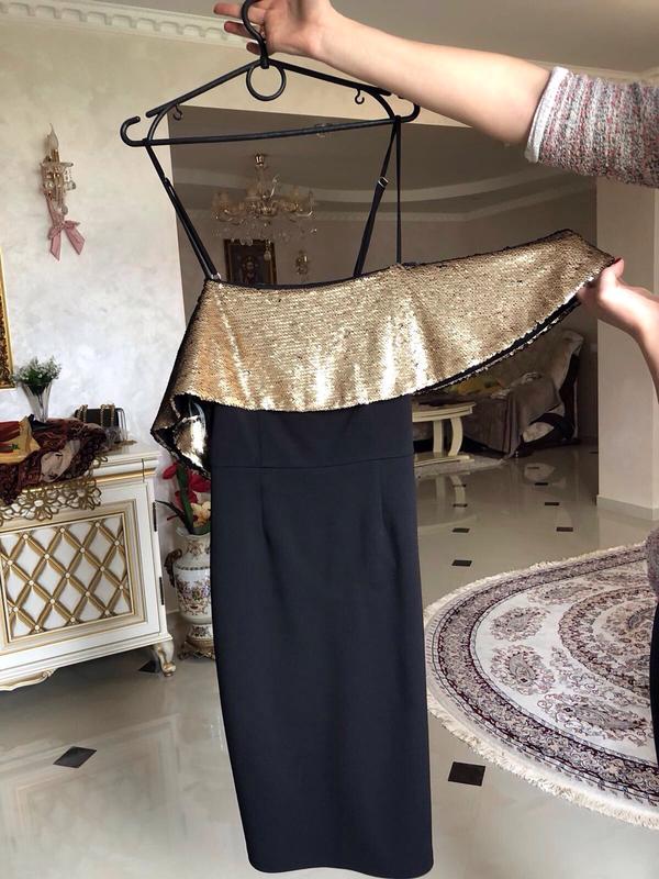 Дуже гарне чорне плаття,на плечі вишито золотими паєтками . Одягалося 1 раз.