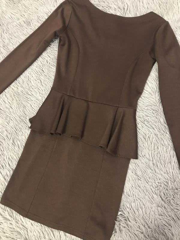 Плаття коричневе пошите по фігурі. Довжина плаття 74 см. Довжина рукава 58 см. Ззаді красивий виріз.