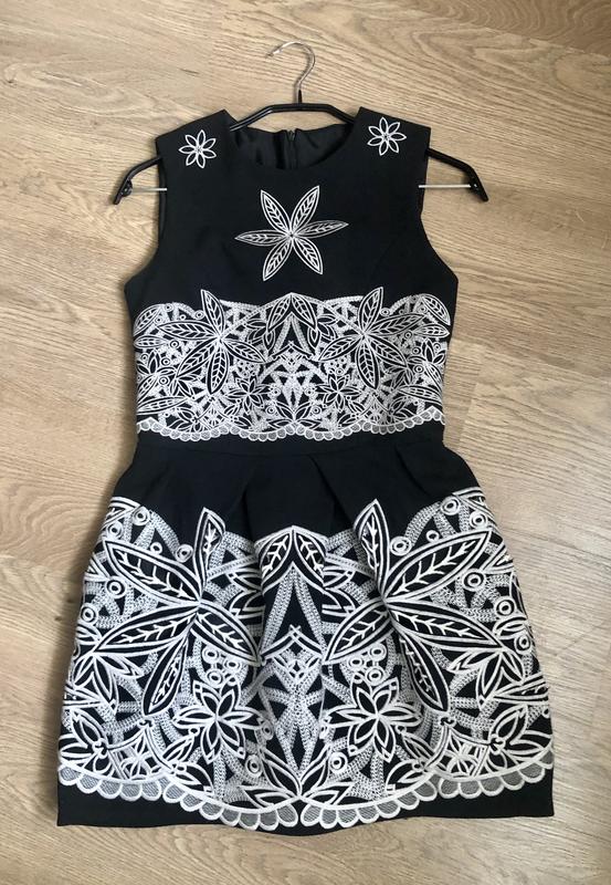 Продам неймовірне плаття, зверху плотна костюмна тканина з шикарним макраме кружевом, зсередини шовкова підкладка. Плаття гарно тримає форму, тканина практично не тянеться. Купувала для себе, під час поїздки за кордон,одягнула 2 рази на урочисті події. Купувала дорого, ну як на мене так воно і виглядає}} ідеально сяде на XS і невелику S.