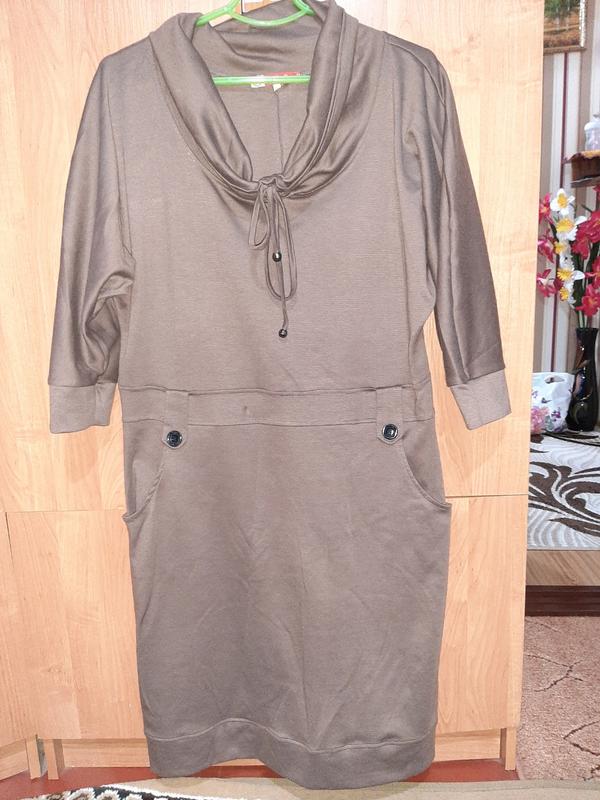 красивое трикотажное платья, есть маленькое пятнышко на поясе.замеры: длина 107см, пог 59 , пот 53, поб 60