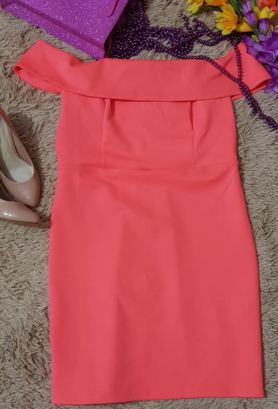 брендовое яркое платье с открытыми плечами длина-73 ПОГ-42 ПОТ-40