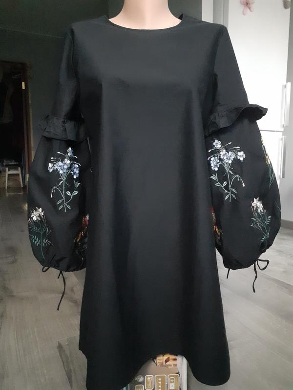 Платье с шикарными вышитыми рукавами.Может быть как мини платье или туника.Замеры: длинна по спинке 85, ширина под мышками 52, ширина по низу 69,плечи 41, длинна рукава от плеча 56