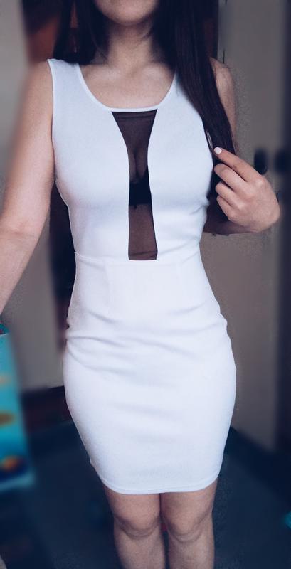 Маленькое белое платье с сеточкой в зоне декольте. Очень красиво выглядит 🤍