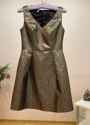 Стильное коктейльное платье Цвет на фото соответсвует реальному (золотистое) под разным освещениям можем казаться металического оттенка. Состояние новой вещи, покупалось на подарок, не подошло по фигуре. Без дефектов и нюансов. Размер по этикетке - 8 / или S замеры: полуобхват груди - 41 ( в одетом виде в груди 44). полуобхват талии - 34 длина - 81- 82. Если остались вопросы - пишите!