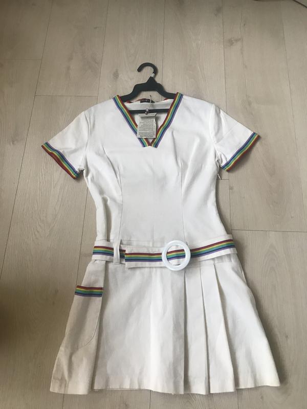Новое. Цвет слегка близок к молочному. Джинсовая стрейчевая ткань. Но тянется не сильно. Замок на боку.