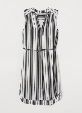 Плаття без рукавів з креповой тканини з трикутним вирізом і невеликим комірцем-стійкою. Складання на плечах, відрізне по завязкам на талії. На підкладці. Опис:синя/біла смужка Розмір:34 СоставПолиэстер 100%Підкладка: Поліестер 100%
