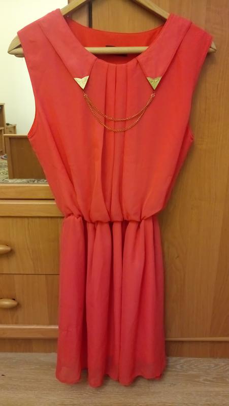Платье универсал. Хорошо тянется за счёт резинки. По этому размер с-М точно, можно даже l. Цвет красивый коралловый.