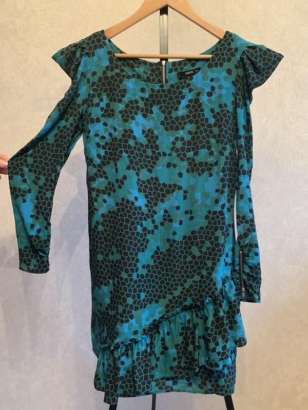 Платье с оригинальными рукавами и оборкой по низу. Замок по спинке и на рукавах. Размер на бирке (М/L)
