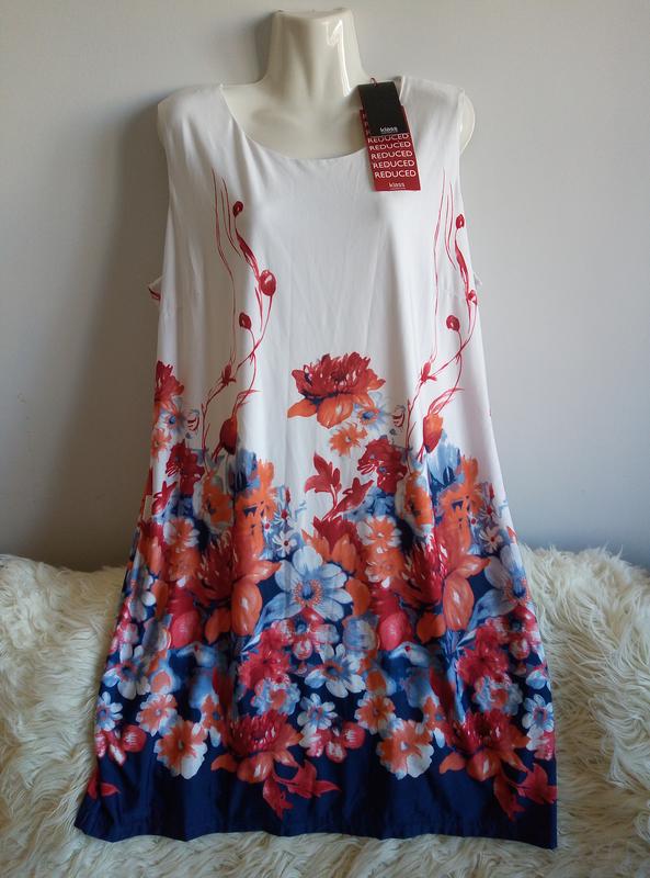 Прекрасное, нарядное платье, в цветочный принт, на белой подкладке. Имеется нюанс, затяжка на подкладке, что включена в цену товара. Пог 56 Поб 58 Длина 94