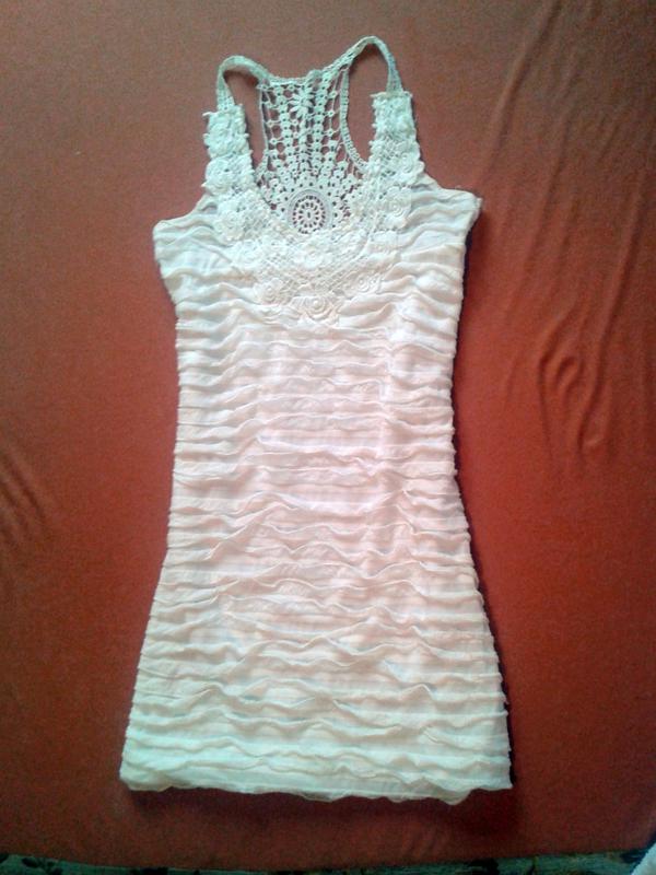 Очень красиве кружевное мини платьечко, в идеальном состоянии. Длина - 87. Стречевое, идет на размер от S до L. Фото на теле в лс.
