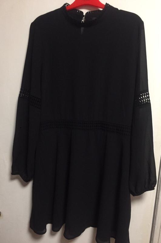 Элегантное чёрное платье свободного кроя с красивым узором на рукавах. Состояние идеальное, размер L.