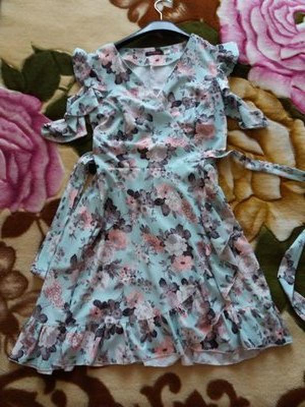 Плаття літнє на запах, зав'язується на пояс, тому розмір регулюється від 40 до 46. Відмінний стан, без дефектів. Довжина 90 див.