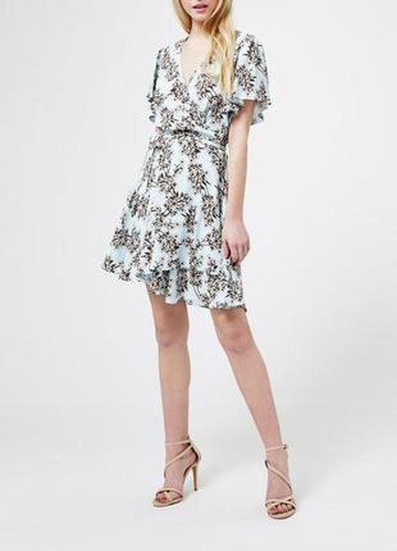 Миле платтячко на запах (повністю розчиняються по типу халата). Чарівний квітковий принт на ніжно-блакитному тлі. Зав'язується на талії,красиво її підкреслюючи. Тканина приємна до тіла, матова, не просвічує (100% віскоза)Повністю відповідає фото на моделі. Ідеальний стан, без дефектів Розмір S/M,за рахунок регулювання. Довжина - 87 см, ПОГ - 45 см(може бути більше,просто виріз буде трохи глибше тоді:) . Талія регулюються пояском, стегна - вільно.