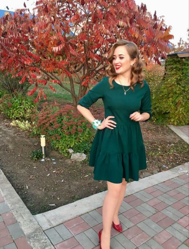 Нарядное платье,одето один раз на свадьбу..хорошо скрывает недостатки фигурки за счёт пышной юбки,рукавчик внизу на резиночке,на груди сделаны выточки,талия свободная.. плечи-38 ПОГ-46(до 96 в окружности) Талия-42 Длинна-99 Размер на бирке Л,но идёт на М По желанию ,для уверенности сделаю дополнительные фото,так как только зарегистрировалась))))
