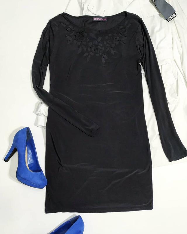 ❤️эластичное чёрное платье с перфорацией, по фигуре ☑️ Размер- 16, лучше 12-14 Пог 45-54, поб 49-56, длина 84, рукав 62 ☑️ Бренд- Boohoo ☑️ Состояние- отличное Фото на теле не делаю!!!
