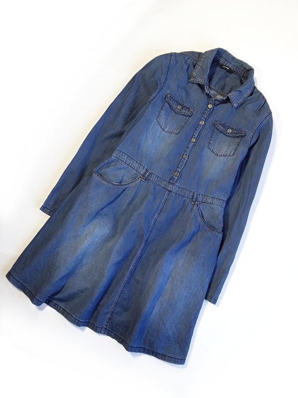 Милое джинсовое платье от George.Размер S.Пог 45 см.Талия 38 в спокойном состоянии,сзади резинка.Длина 89 см.Плечи 37 см.Рукав 60 см .100% cotton