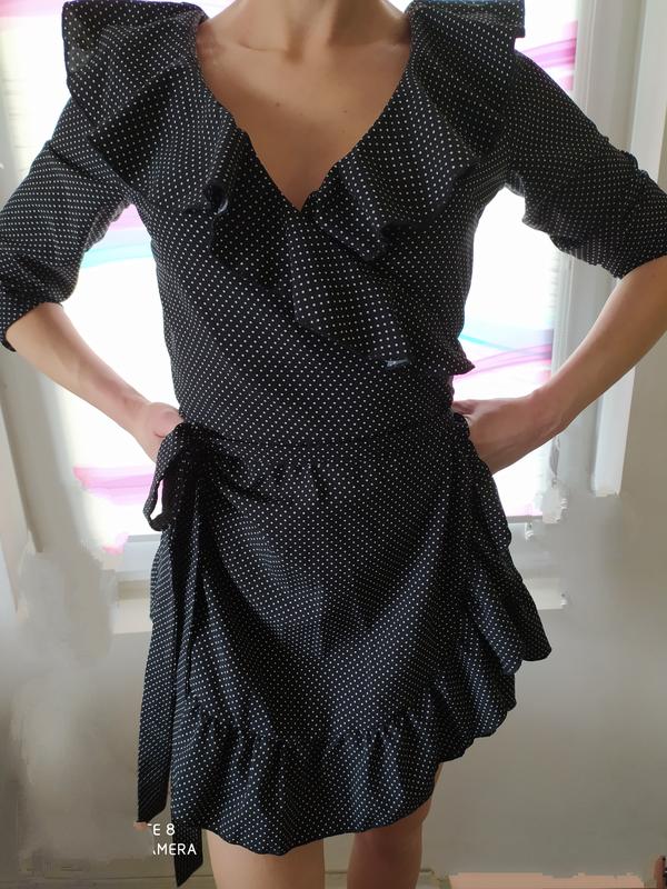 Стильне легеньке платтячко в горошок на запах,актуальне в цьому сезоні,розмір регулюється за рахунок запаху,заміри по потребі