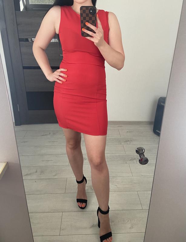 Красное платье размер с-м, сбоку молния, длина 88 см, от подмышки до подмышки 47 см, талия 39,5 см