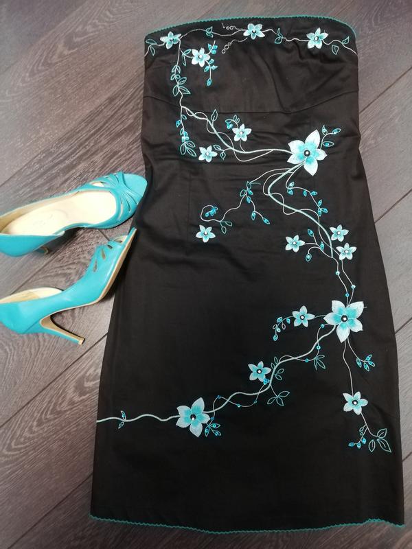 Дуже красиве ошатнішою плаття з бірюзовою вишивкою, ззаду замок, приталене, без бретельок