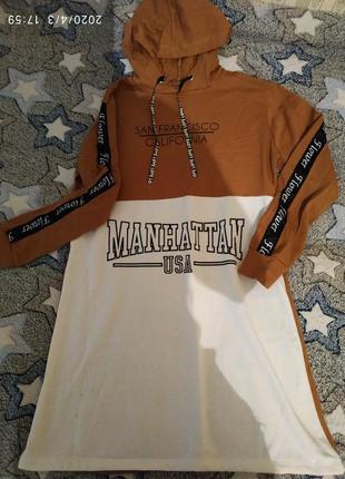Очень крутое и стильное платье! качество супер Производитель Турция состав не указан,нет бирки( но качество шикарное,перед платья утеплен ,типо флис очень мягенькое и теплое ..нюансик перепечатался рисунок на белом,думаю при стирке 39-40% градусов уберется... также есть в голубом и пудровом цвете ... носить можно как платье и как тунику под лосины.. ЦВЕТ: красивый бежево коричневый, очеень красивый цвет,фото к сожалению не передаёт( длина без капюшона по спинке 82см длина рукава 56 пог от подмышки до подмышки 50 поб 50 плечи 42 капюшон 33/22+-0,5см Нюансик в цене учтён... УВ ПОКУПЦІ НАКЛАДЕНОГО ТА ПОВЕРНЕННЯ НЕМАЄ ❌❌❌