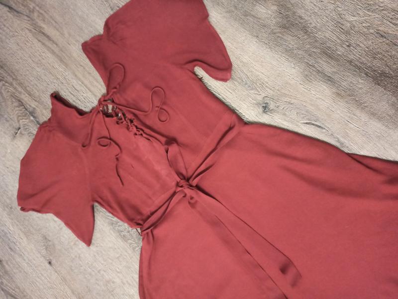 Красива сукня теракотового кольору зі шнурівкою на спинці та грудях. Легка і приємна до тіла. По бірці розмір Л, за фактом краще на М, але орієнтуйтеся по замірах: ПОГ-40 см ПОБІДИ - вільно ПІТ-33 см Довжина-87 см