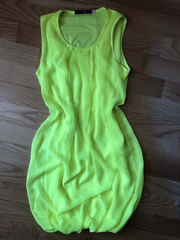 Класне неонове платтячко на літо! Трикотажне, зверху обємний шифон на резиночці знизу. Підійде і на С і на М. Стан прекрасний!