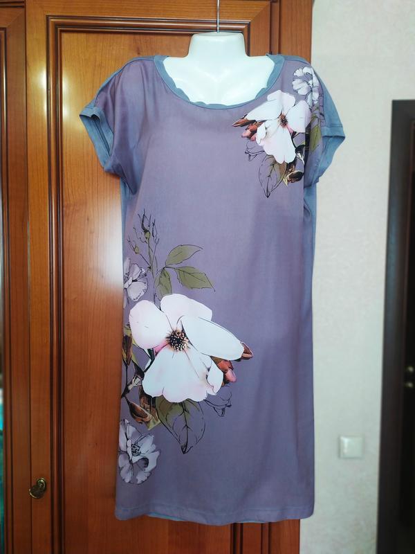 Шелк с трикотажем. Замеры в спокойном состоянии. Тянеться. ПОгруди-54см,ПОталии-50см, ПОбедра-52,5см,Длина-99см.