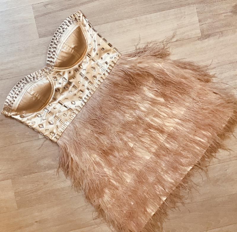 Шикарное платье, верх с плотными чашками, низ перья страуса, новое{ без бирки}, , длина от груди 56см, размер хс-с