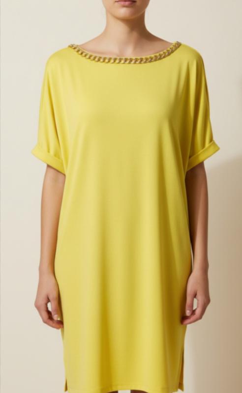 Славное платьице с с декором цепь . Тонкая,прохладная,стуящаяся ткань "масло".Не мнется.Пог 52 Фасон трапеция.Длина 85см.Цвет желтый лимон..Платье новое.Mohito.Бирок бум.нет.Новое.