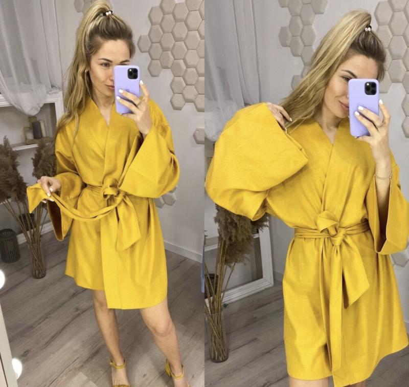 Размер: 42-46 Цвет: белый, голубой, оливка, горчица, терракот электрик хаки Ткань: натуральный лён Платье кимоно на запах, внутри дополнительные завязки, пояс в комплекте Наложенного нет! Оплата 100%, отправка новой ср, сб. Укр почтой 1 раз в неделю