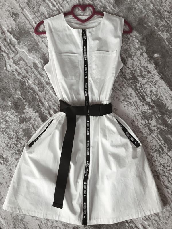 Красива біла сукня з поясом. Матеріал - хлопок, дуже приємна до тіла. Не просвічується. На талії є резинка. Розмір універсальний Довжина 87 см Талія 65 см тянеться резинка Плечі 33 см Ширина між підмишками 44 см
