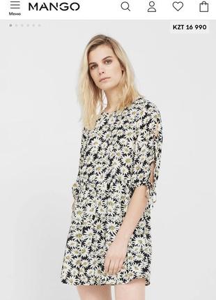 Струящаяся ткань. Набивной рисунок. Два слоя. Рукава три четверти. Завязки. Круглый вырез горловины. Присборенная деталь. Сзади застежка на молнию.