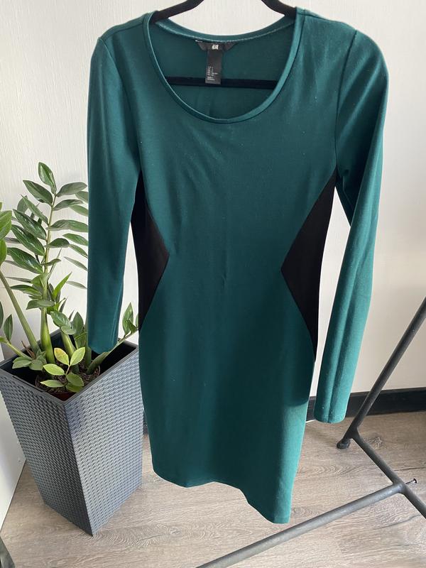 Плаття трикотажне , візуально робить тоншою талію завдяки чорним вставкам по боках.