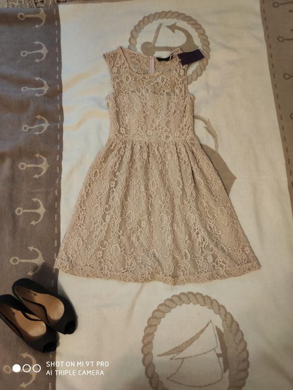 МЕГА Красивое гипюровое платье бежевого цвета от известного бренда.Подойдет как на вечеринку ,так и в кафе, на любой праздник. Длинна изделия 85см Талия полуобхват 33см Под грудью -40см плюс ещё немного тянется Дополнительные фото и замеры по запросу.