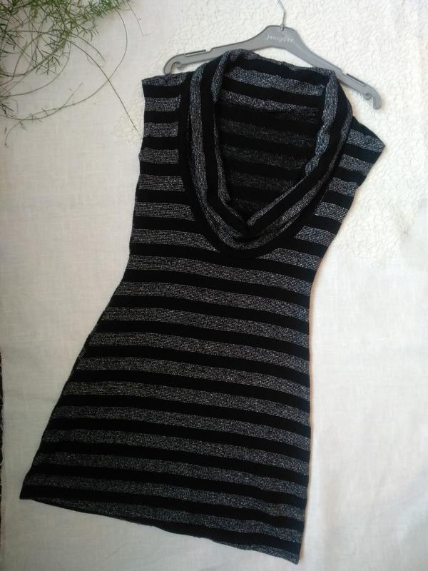 Чорне плаття в полоску з вирізом. ПОГ 40 ПОТ 36 ПОБ 45 Плечі 46 Довжина 80 Тканина тягнеться.